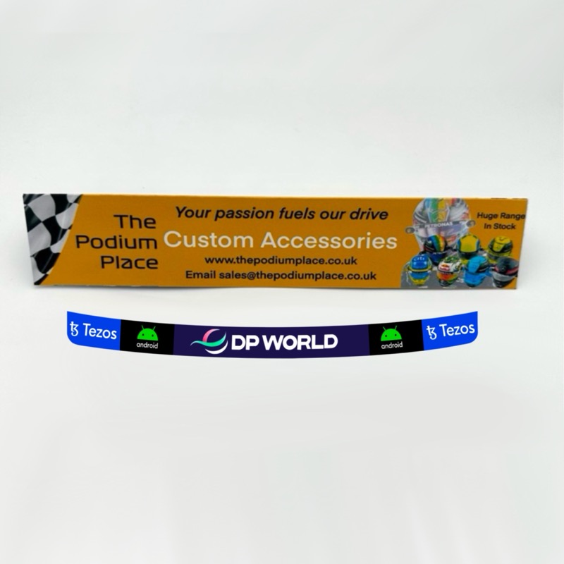 Upgrade your Mini Helmet with this 2023 Lando Norris Visor Strip complete with Teroz, Android and DPWORLD as worn by Lando in some 2023 races.