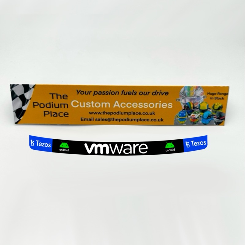 Upgrade your Mini Helmet with this 2023 Lando Norris Visor Strip complete with Teroz, Android and VMWARE as worn by Lando in some 2023 races.