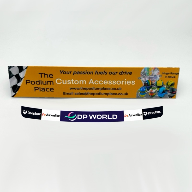 Upgrade your Mini Helmet with this 2024 Singapore Lando Norris Visor Strip complete with Dropbox, Airwallex and DPWORLD as worn by Lando to victory.
