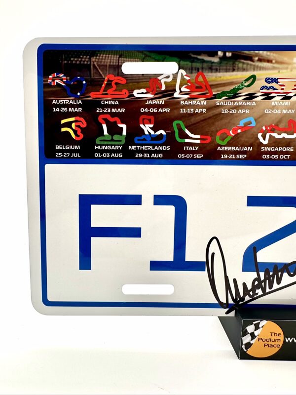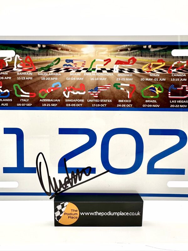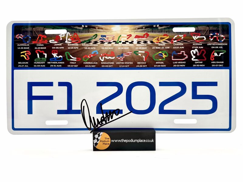 2025 Licence Number Plate Signed by Andrea Stella McLaren, celebrate the 2025 F1 season, the 75th anniversary since F1 started, with this Aluminium 2025 Calendar Licence Plate. A great keepsake to commemorate another exciting season of Formula 1.