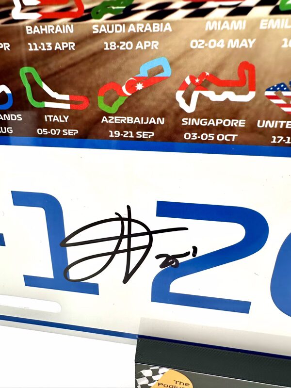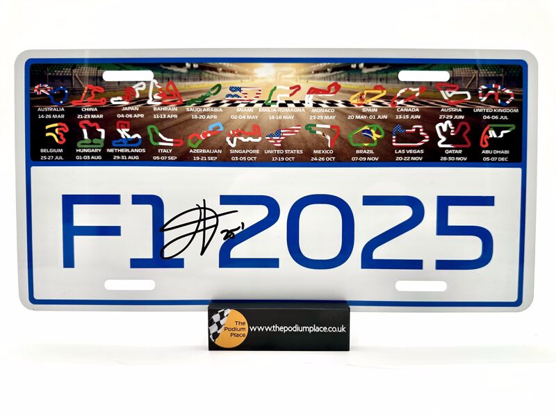 2025 Licence Number Plate Signed by James Vowles, celebrate the 2025 F1 season, the 75th anniversary since F1 started, with this Aluminium 2025 Calendar Licence Plate. A great keepsake to commemorate another exciting season of Formula 1.