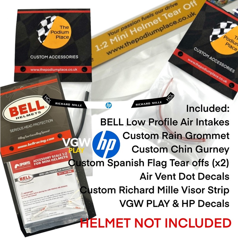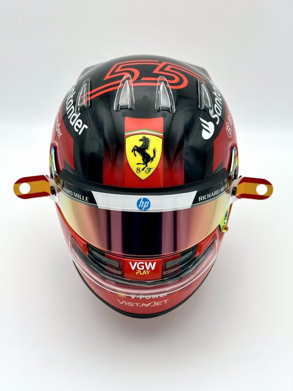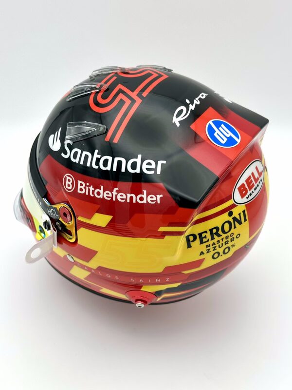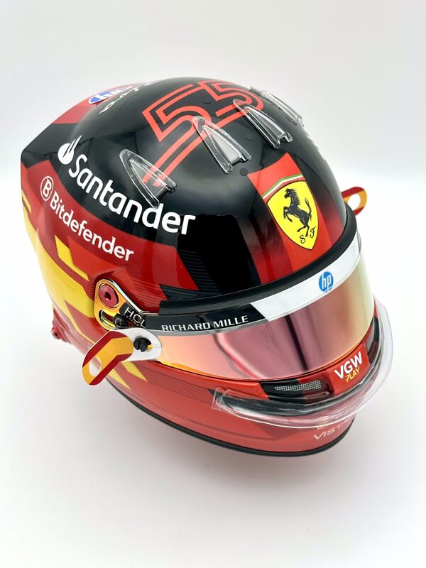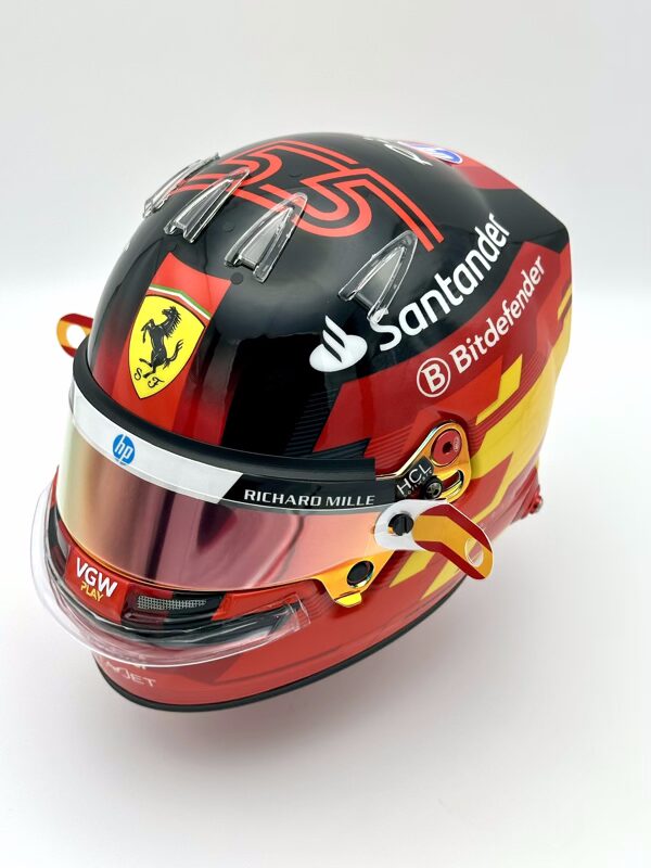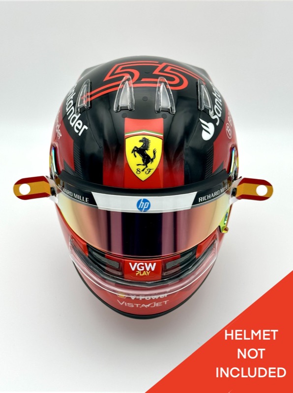 Carlos Sainz Ferrari 2024 1:2 BELL Helmet Upgrade Bundle. A comprehensive upgrade bundle that adds authenticity to the Carlos Sainz 2024 1:2 helmet.
