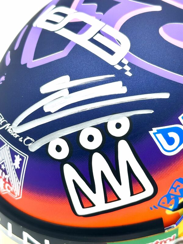 The helmet is signed on the top in silver pen. Complete with official DRM COA and picture