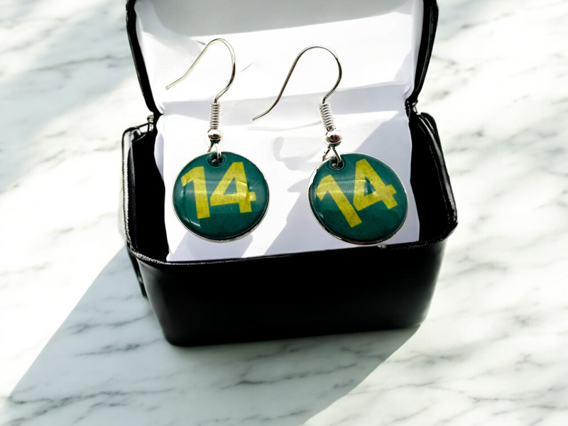 Elevate your F1 accessory collection with our stunning Fernando Earrings. A unique statement piece. Crafted with meticulous attention to detail, each earring is set in a sleek black box, ensuring they are not only a treat for yourself but also an ideal gift for a loved one. The lightweight construction ensures comfort throughout the day. Embrace your love for Fernando and showcase your style with these remarkable earrings.