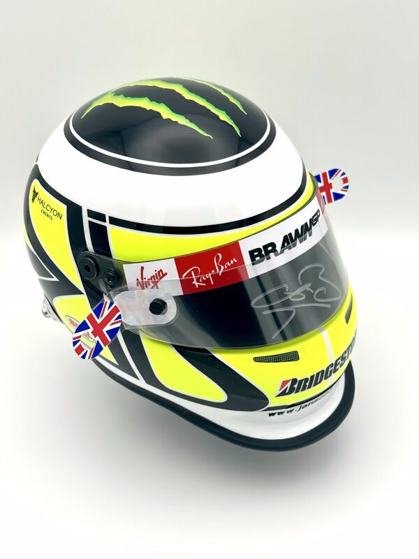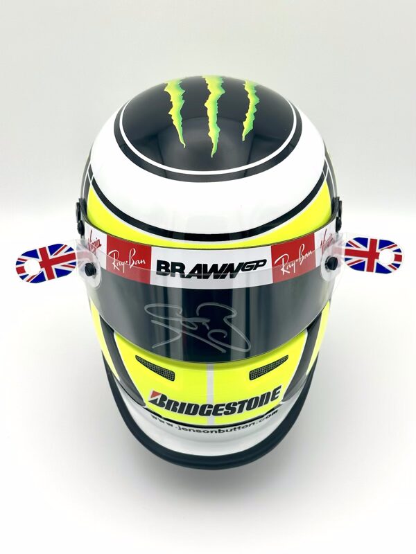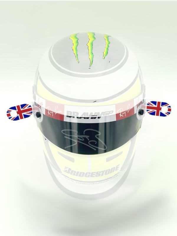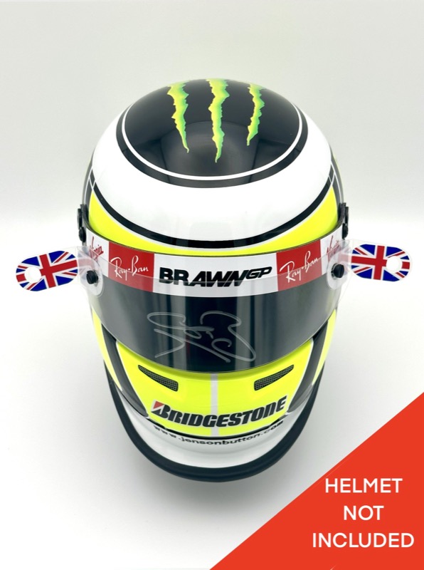 Jenson Button 1:2 2009 BELL HP3 Helmet F1 Brawn Upgrade Bundle. Should you wish to upgrade your DRM release Jenson Button 2009 World Drivers Champion 1:2 Helmet to look more realistic this bundle of accessories is for you.