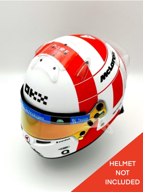 Should you wish to upgrade your Lando Norris 1:2 Monaco Triple Crown Helmet to look more realistic this bundle of accessories is for you.