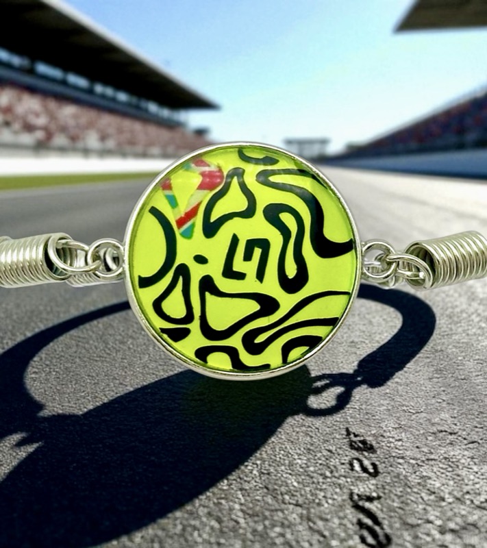 Lando Norris 2025 Silverstone GP Win Unisex Bracelet inspired by Lando Norris’s 2025 Silverstone Helmet this unique design which includes a pattern of the Union Jack and his LN4 Logo is set to the centre, with velvet black straps with lobster clasp and adjustable chain.
