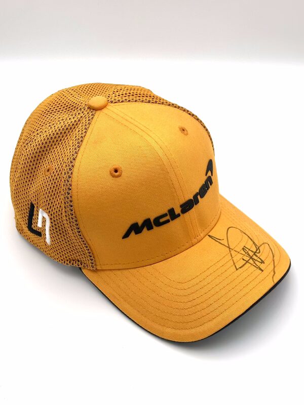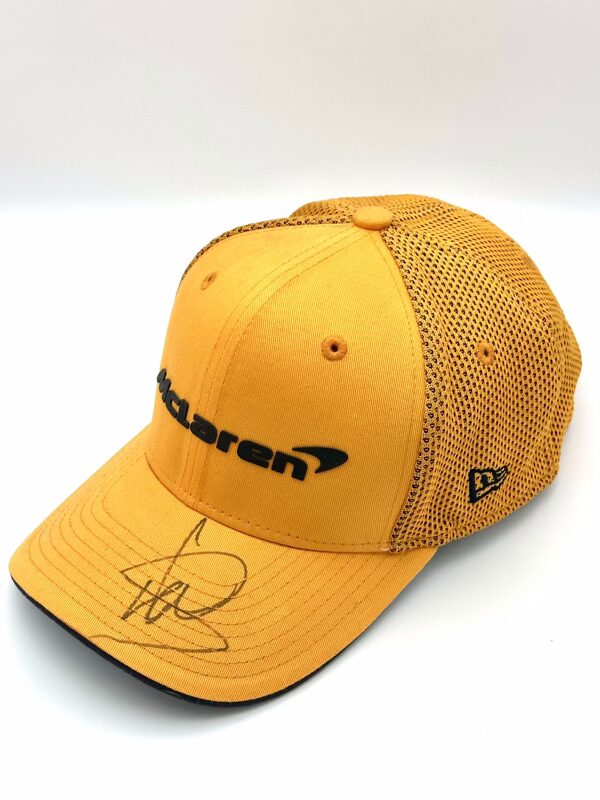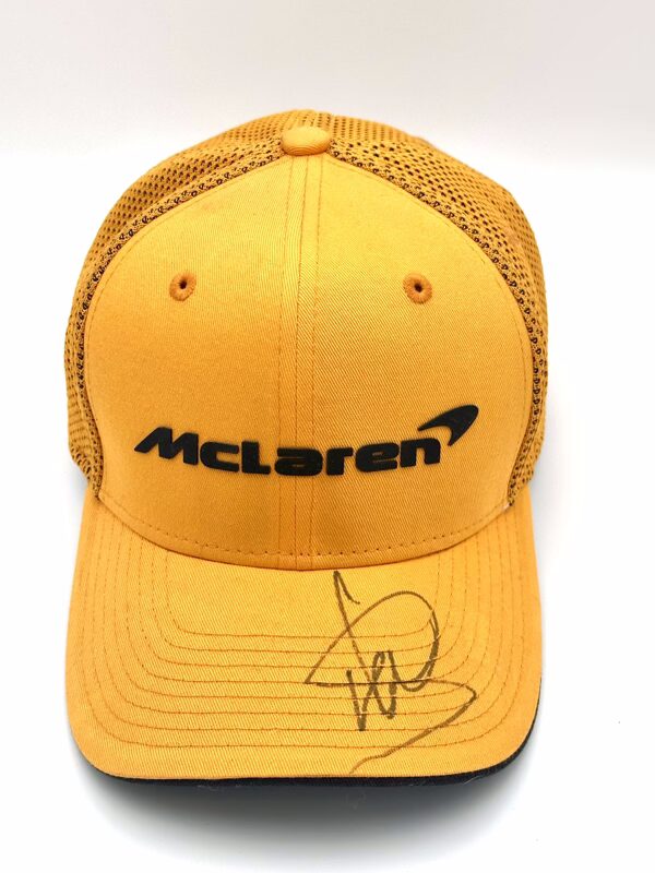 Lando Norris Signed McLaren Cap. Stunning papaya and black cap signed by Lando Norris.
