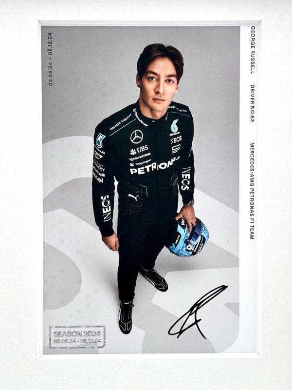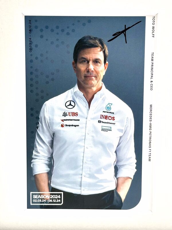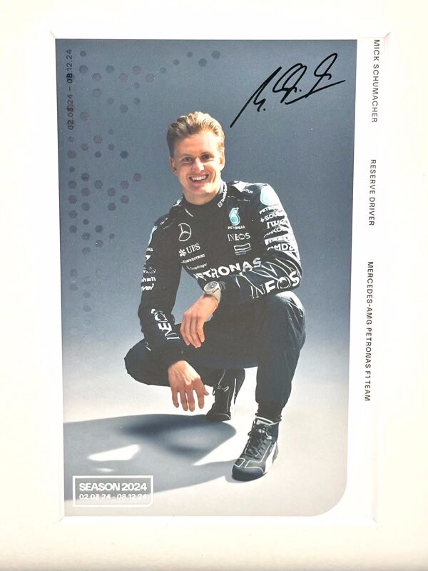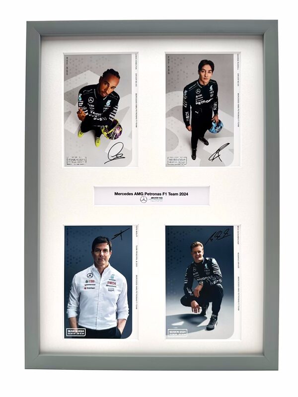 Mercedes F1 Team 2024 Framed Drivers Cards Hamilton Russell Wolff Schumacher