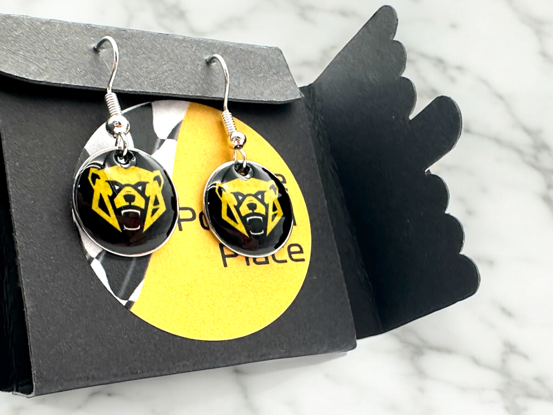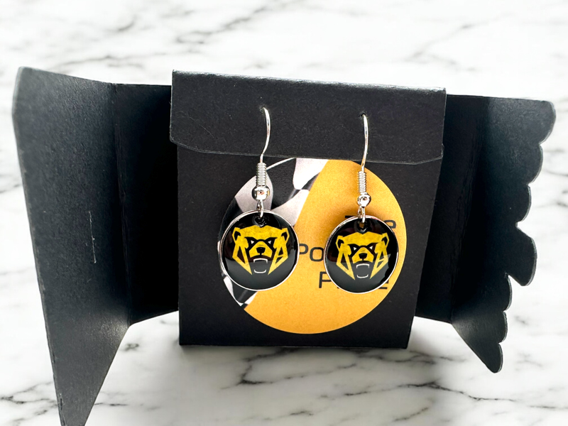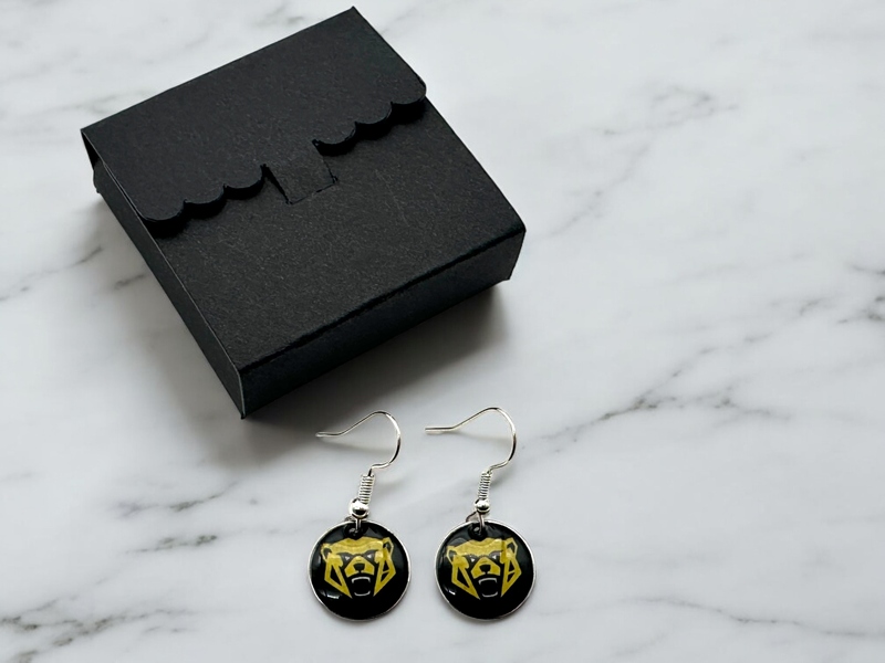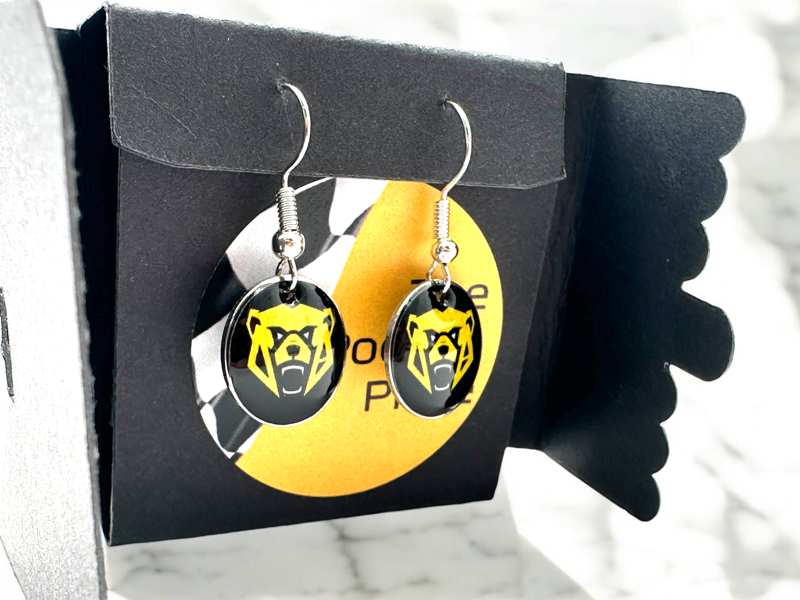 Elevate your F1 accessory collection with our stunning Ollie Earrings.  A unique statement piece. Crafted with meticulous attention to detail, each earring is set in a sleek black box, ensuring they are not only a treat for yourself but also an ideal gift for a loved one. The lightweight construction ensures comfort throughout the day. Embrace your love for Ollie and showcase your style with these remarkable earrings.