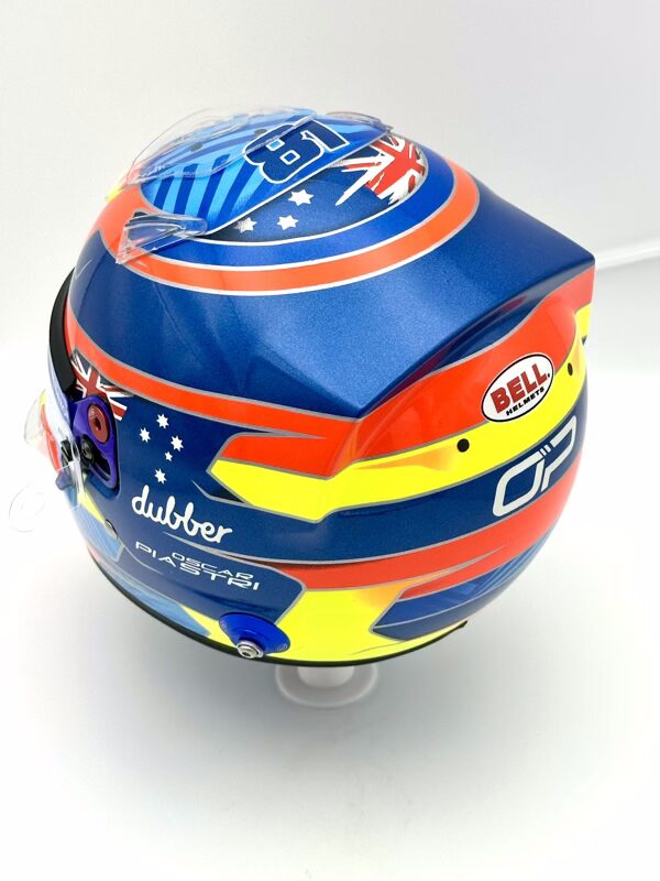 This helmet has undergone the full Podium Place upgrade treatment and has become much sought after with Oscar’s exploits on track and winning ways gaining him a large following of F1 fans.