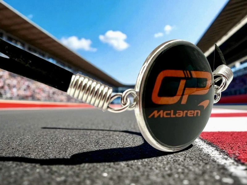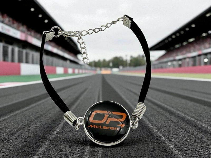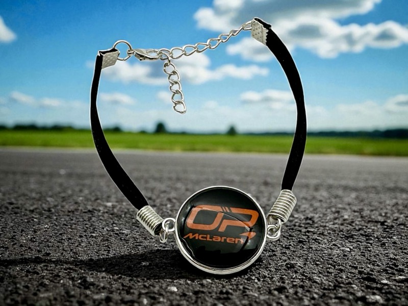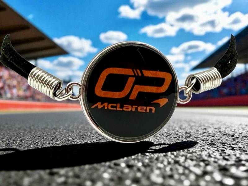 Oscar Piastri McLaren Unisex Bracelet with Oscar’s logo OP and the McLaren logo, with velvet black straps with lobster clasp and adjustable chain.
