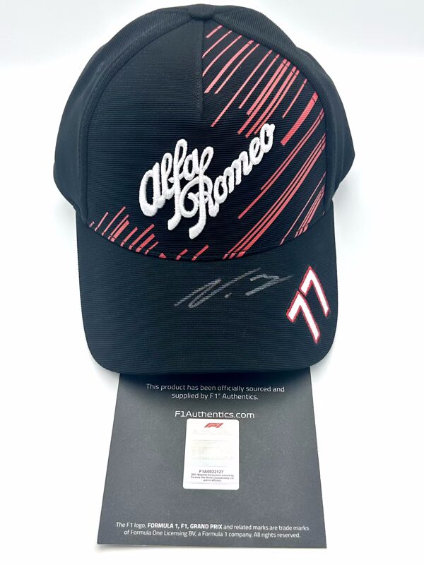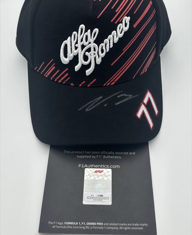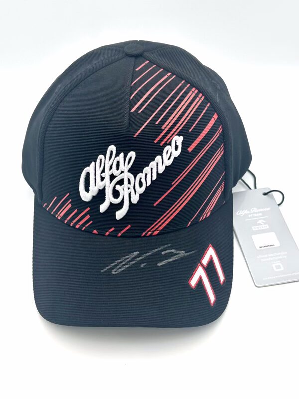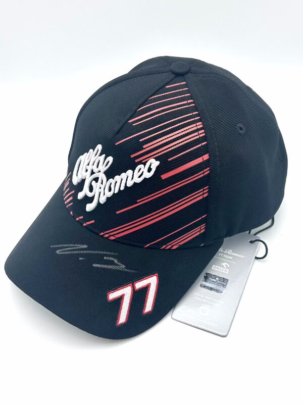 Stunning Alfa Romeo cap signed in silver pen by Valterri Bottas.
